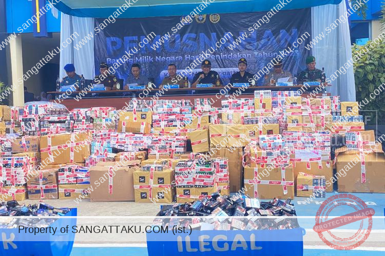 SANGATTAKU – Kantor Pengawasan dan Pelayanan Bea dan Cukai Tipe Madya Pabean (KPPBC TMP) C Sangatta Kutai Timur (Kutim) sukses menyita Barang Milik Negara (BMN) yang telah ditetapkan sebagai barang kena cukai (BKC) ilegal dalam bentuk 1.124.500 batang rokok berbagai merek dan 221 botol/110,98 liter Minuman Mengandung Etil Alkohol (MMEA). Total nilai dari barang-barang tersebut mencapai Rp1.424.754.000.