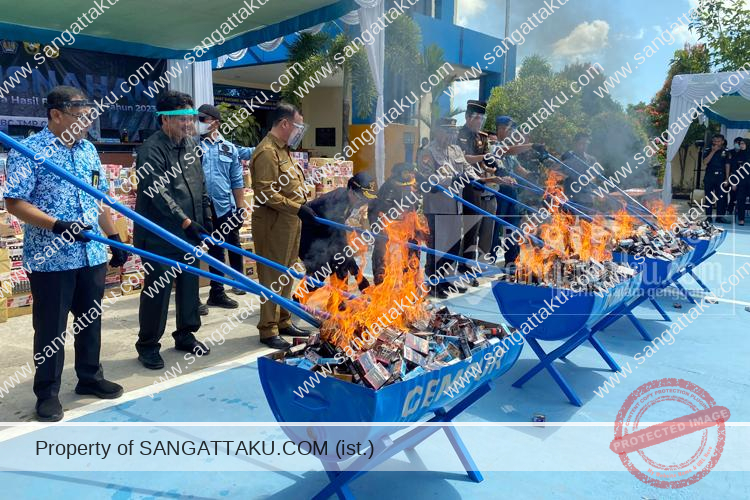 Proses pemusnahan barang ilegal dilakukan di halaman Kantor Bea dan Cukai Kutim, disaksikan oleh berbagai pihak termasuk Asisten Pemkesra Kutim, Poniso Suryo Renggono, Kakanwil Bea Cukai Kalimantan Timur (Kaltim), Kusuma Santi Wahyuningsih, unsur Forkompinda, dan para stakeholder lainnya, pada Selasa (5/3/2024).
