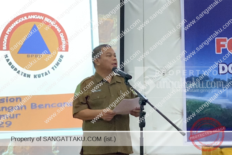 Ketua Panitia sekaligus Kepala Pelaksana (Kalak) BPBD Kutim, M. Idris Syam, mengawali kegiatan FGD dengan laporan mengenai langkah-langkah yang telah diambil sebelum dilaksanakan FGD ini.
