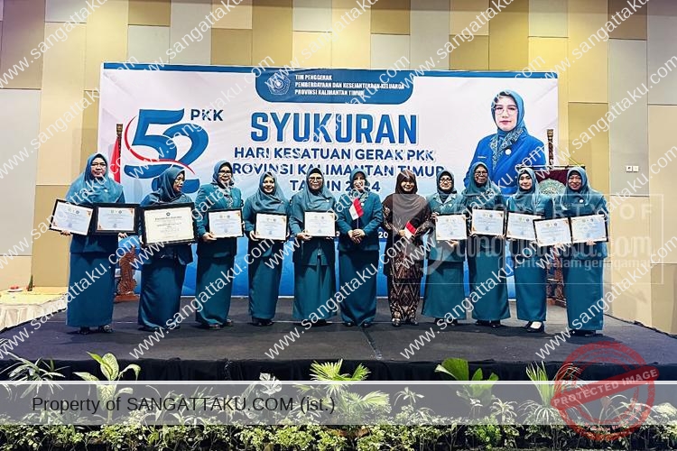 SANGATTAKU – Tim Penggerak PKK Kabupaten Kutai Timur (Kutim) berhasil meraih sederet prestasi membanggakan dalam lomba yang diselenggarakan oleh TP PKK Provinsi Kalimantan Timur (Kaltim) dalam rangka peringatan Hari Kesatuan Gerak PKK ke-52 tahun 2024. Penghargaan tersebut diterima langsung oleh Ketua TP PKK Kutim, Siti Robiah Ardiansyah, dari Ketua TP PKK Kaltim, Yulia Zubir Akmal, dalam sebuah acara yang berlangsung di Harris Hotel Samarinda, Selasa (13/08/2024).