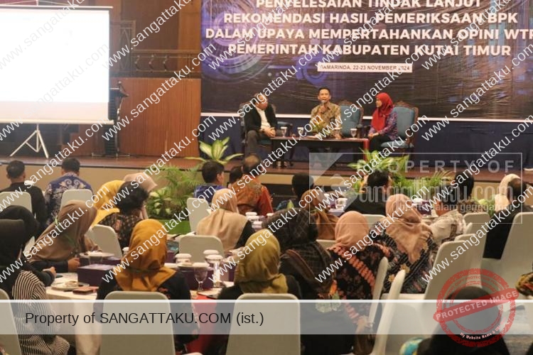 SANGATTAKU – Komitmen Pemerintah Kabupaten Kutai Timur (Kutim) dalam mempertahankan opini Wajar Tanpa Pengecualian (WTP) dari Badan Pemeriksa Keuangan (BPK) kembali ditunjukkan melalui penyelenggaraan kegiatan Tindak Lanjut Hasil Pemeriksaan (TLHP). Bertempat di Hotel Senyiur, Samarinda, Badan Pengelolaan Keuangan dan Aset Daerah (BPKAD) Kutim menggelar acara yang dihadiri 139 peserta dari berbagai elemen pemerintahan.