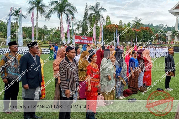 SANGATTAKU – Nuansa keberagaman budaya Nusantara mewarnai peringatan Hari Guru Nasional (HGN) 2024 di Kabupaten Kutai Timur. Bertempat di Lapangan Kantor Bupati Kutim, Sangatta, Senin (25/11/2024), ribuan tenaga pendidik dari berbagai wilayah Kutai Timur berkumpul mengenakan pakaian adat dari Sabang sampai Merauke.