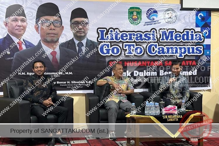 SANGATTAKU – Dinas Komunikasi, Informatika, Statistik dan Persandian (Diskominfo Staper) Kutai Timur menggelar program literasi media dengan tema “Bijak Dalam Bersosmed” di kampus STIE Nusantara Sangatta. Program yang diselenggarakan pada Rabu (20/11/2024) malam ini fokus pada edukasi penggunaan media sosial yang bertanggung jawab di kalangan mahasiswa.