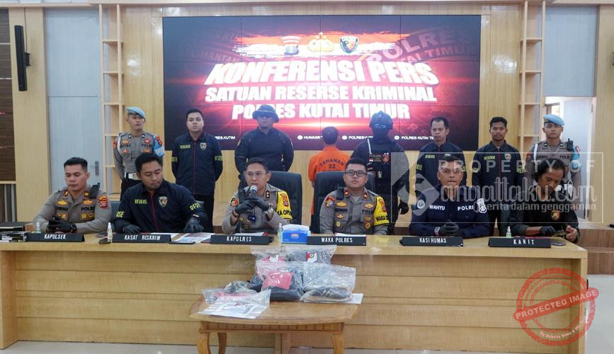 SANGATTAKU – Satuan Reserse Kriminal Polres Kutai Timur berhasil mengungkap kasus pencurian dan pembunuhan yang terjadi di wilayah hukum Polres Kutai Timur pada Minggu (23/12/2024) dini hari. Berdasarkan pernyataan resmi yang disampaikan dalam konferensi pers di Mapolres Kutai Timur oleh Kapolres Kutai Timur, AKBP Chandra Hermawan, didampingi Wakapolres Kompol Herman Sopian, Kasat Reskrim AKP Dimitri Mahendra Kartika, dan Kasubbag Pengmas Si Humas Polres Kutai Timur, Aipda Wahyu Winarko (02/01/2025), korban ditemukan tak bernyawa dengan kondisi luka bacok di bagian wajah dan kepala, bahkan senjata tajam jenis parang masih tertancap di wajah korban.