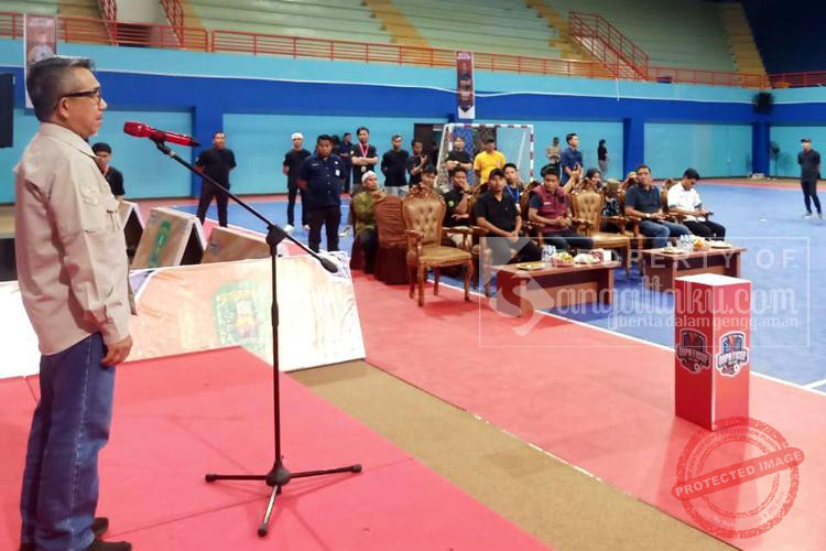 Bupati Kutai Timur, Ardiansyah Sulaiman saat beri sambutan pada pembukaan Open Tournament Futsal Bupati Cup Kutai Timur. (ist/sangattaku)