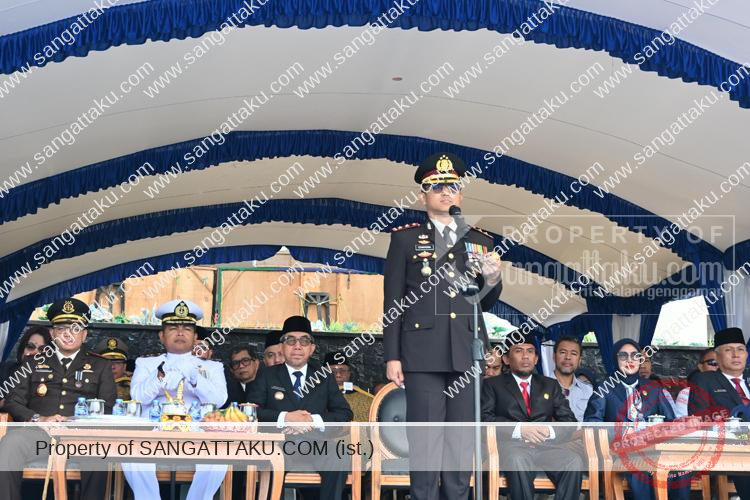 SANGATTAKU – Kepala Kepolisian Resor (Polres) Kutai Timur, AKBP Chandra Hermawan, menegaskan komitmen Polri dalam mendukung pembangunan nasional serta meningkatkan pelayanan kepada masyarakat. Pernyataan ini disampaikannya saat memimpin upacara peringatan Hari Bhayangkara ke-79 di Lapangan Kantor Bupati Kutai Timur, Selasa, 1 Juli 2025.